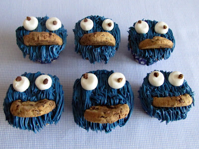¿Os acordáis de la entrada anterior? Si si...Los Cupcakes de Buttercream Pitufantes....jejeje, el Buttercream iba pensado para el Monstruo de las galletas, así que,como un azul tan intenso no se podía desperdiciar...A hacer unos Monstruitos graciosos.